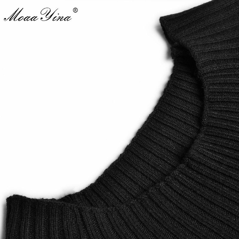 MoaaYina Fashion Designer dress Spring Autumn Women's Dress Sashes knitting